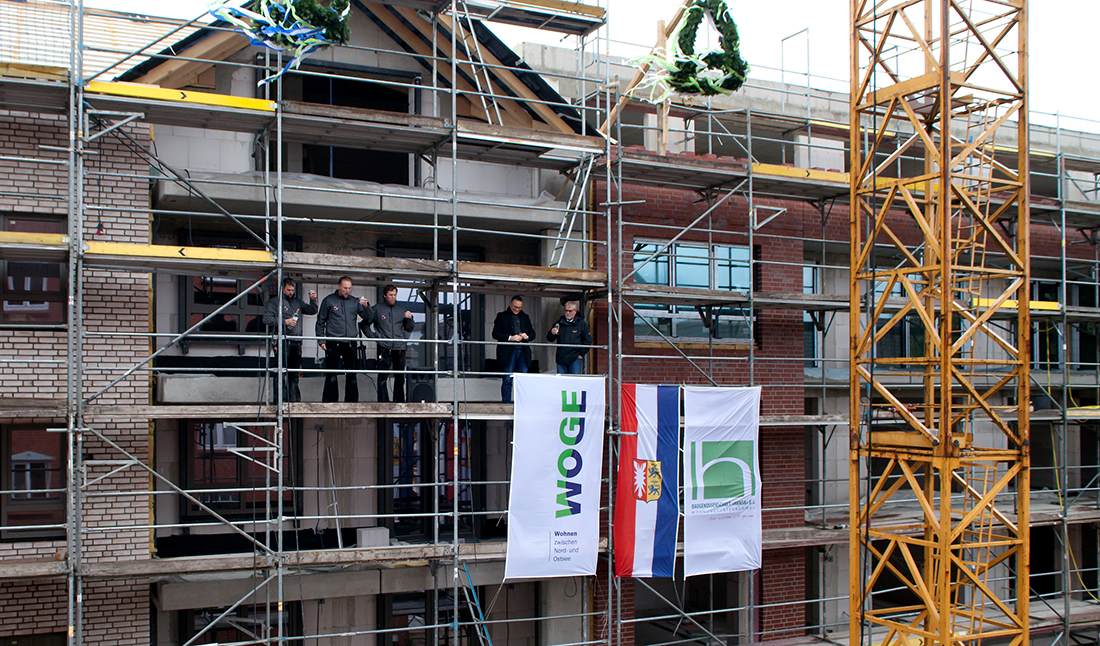 Richtfest für das gemeinsame Neubauvorhaben der WOGE Wohnungs-Genossenschaft Kiel eG und der Baugenossenschaft HANSA eG in Kiel, Lindenstraße 8 und 10