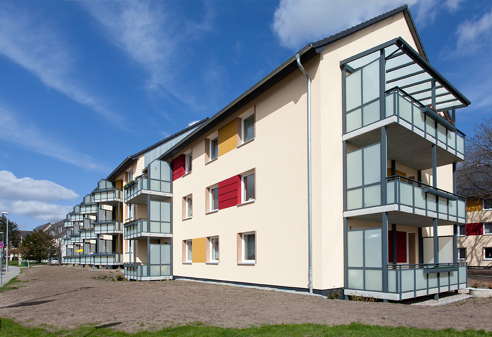 Unser Mehrfamilienhaus ist von einer weiträumigen Grünanlage umgeben und verfügt über eine gute Anbindung an den öffentlichen Nahverkehr. Ein Bäcker und ein Lebensmittelgeschäft für den täglichen Bedarf ist in der Nähe. Die Fachhochschule und die Universität liegen in unmittelbarer Nähe. In wenigen Minuten erreichen Sie den CITTI-Park, der nicht nur ein überdachtes Shoppingvergnügen bietet, sondern auch mit seinen Bistros zum Verweilen einlädt. Für Sie wurden umfangreiche Maßnahmen zur Wärmedämmung an den Häusern der Wohnanlage vorgenommen. Die Dacheindeckung wurde erneuert und die Heizungsanlage wurde durch einen hydraulischen Abgleich und Erneuerung der Thermostatventile in den Wohnungen optimiert. Zudem wurden die vorhandenen Balkone erneuert.