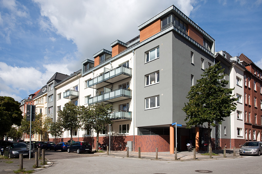 Unser Mehrfamilienhaus wurde 2010 komplett entkernt und aufgestockt. Die Grundrisse sind modern und großzügig. Die Wohnungsgrößen entsprechend den heutigen Bedürfnissen. Das Gebäude hat eine Wärmedämmung, neue Fenster und ein gedämmtes, neu eingedecktes Dach erhalten – hier sparen Sie Energie und Heizkosten! Vervollständigt wurden die Arbeiten durch einen neuen Außenanstrich. Im Dachgeschoss sind vier Maisonettewohnungen mit Dachterrassen entstanden. Alle Wohnungen haben neben einem Parkettboden auch ein neues Bad sowie eine neue Küche, neue Wohnungseingangstüren und - bis auf die Erdgeschosswohnungen - einen Balkon erhalten. Im Hof wurde an die Laubengänge ein Aufzug angebaut, der bis ins ausgebaute Dachgeschoss führt.